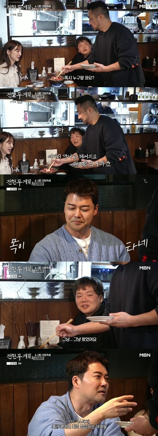스키야키를 직접 끓여주는 오너 셰프에게 곽튜브는 "전현무 씨 자주 오시냐"고 물었고, 셰프는 "자주 오신다"고 답했다.