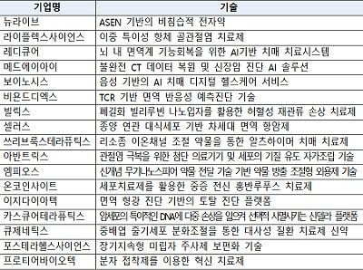 이번에 선발된 기업 중에는 소리와 전기 자극을 통해 대뇌 가소성을 활성화시켜 퇴행성 뇌질환을 치료하는 전자약을 개발하는 ‘뉴라이브’ 등 의료기기 분야 6개사와 빌리루빈 나노입자를 활용해 신약을 개발하는 ‘빌릭스’ 등 의약품 분야 11개사가 포함됐다.