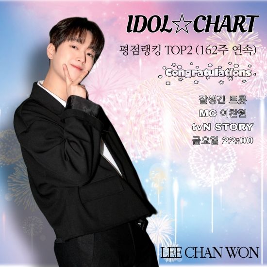 이번 평점 랭킹을 통해 이찬원의 연속 2위 기록은 162주로 늘어났다. 더불어 '좋아요' 역시 11,223개를 획득해 전체 2위에 올랐다.