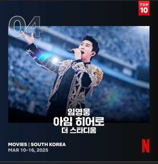 (엑스포츠뉴스 이정범 기자) 임영웅의 영화가 넷플릭스에서 주간 4위를 기록했다.