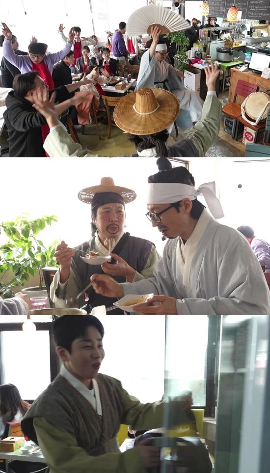 공개된 사진 속에는 “암행어사 출두요”를 외치며 1차전 장소에 도착한 유 어사와 암행단의 모습이 담겨 있다. 점심 시간이지만 손님이 별로 없어 텅 빈 식당에서 사장님은 암행단의 등장에 깜짝 놀란다. 테이블을 채운 암행단은 음식과의 전투 태세를 갖추고 있어, 얼마나 먹어 치울지 관심을 집중시킨다.