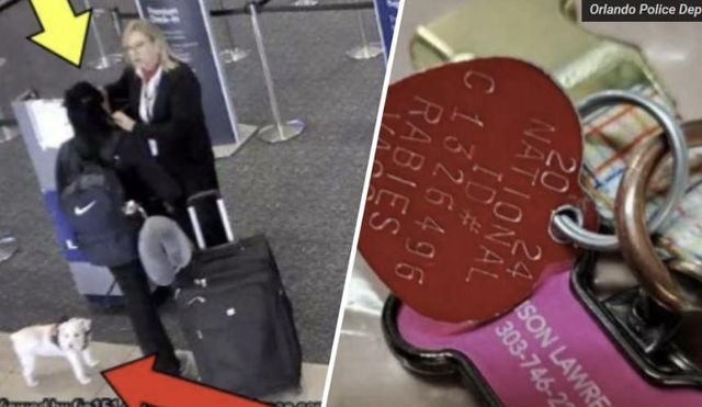 공항 직원이 쓰레기통에서 개 사체와 함께 발견한 인식표에 로렌스 이름과 전화번호가 적혀 있다. /사진=NBC 홈페이지 갈무리