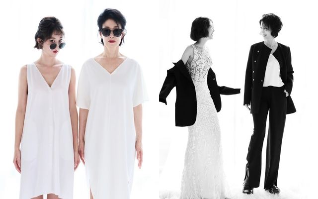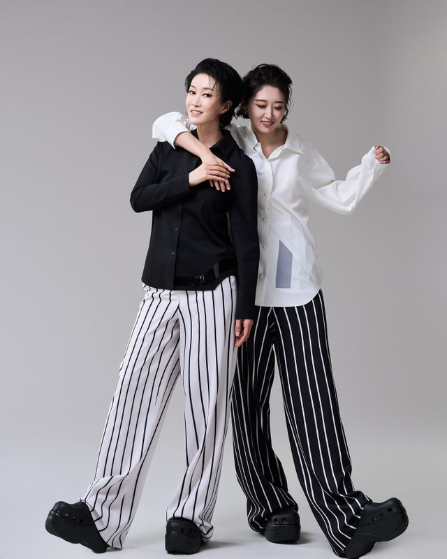 사진 속에는 흑백 스트라이프 커플룩, 드레스, 블랙톤의 단정한 오피스룩, 흰 원피스 등 여러 옷을 입고 포즈를 취하는 나영희 모녀의 모습이 담겨 있다.