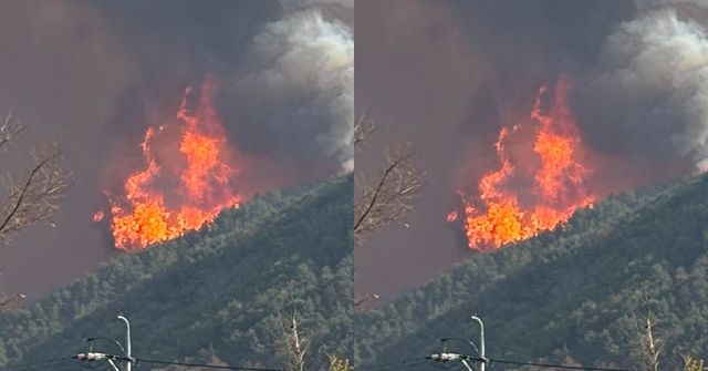 22일 경남 산청 시천면에서 산불이 발생해 이틀째 이어지고 있다. / 뉴스1