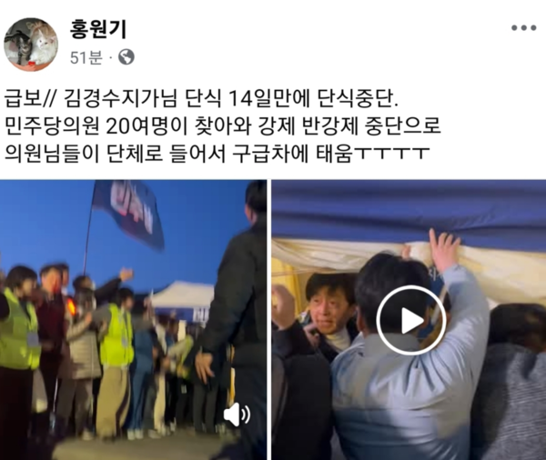 그러나 22일 저녁, 그의 건강이 급격히 악화되면서 결국 병원으로 이송됐다. 민주당 지도부와 지지자들은 김 전 지사의 건강 상태를 예의주시하며 단식 이후의 정치적 대응 방향을 논의할 것으로 보인다.