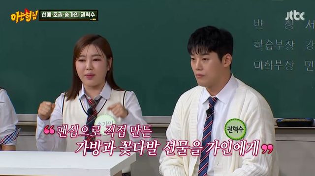 22일 JTBC '아는 형님'에 아무도 몰랐던 절친인 송가인과 권혁수가 출연해 친해진 계기를 밝혔다.