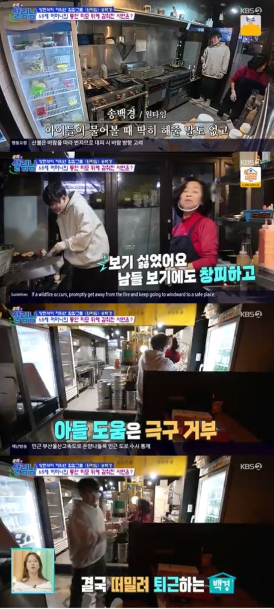 송백경 어머니는 "내가 해야 마음에 든다. 이거 타고난 성격이라 못 고친다"면서 아들을 먼저 집으로 보냈다.