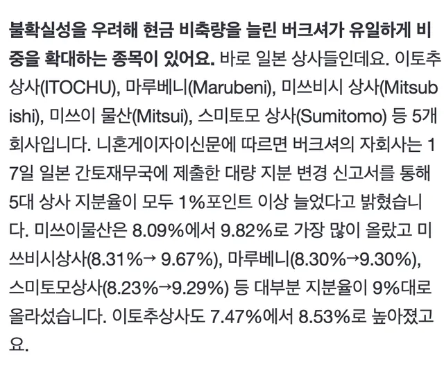 버핏은 일본 부하보다는 일본 상사에 베팅함