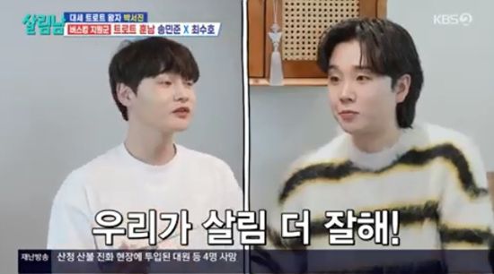 최수호와 송민준은 박서진을 두고 "살림남이 아니라 살림을 어지럽히는 남자다"라고 입을 모으며 '살림남' 출연에 야망을 드러냈다.