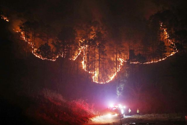 경북 의성에서 발생한 산불이 이틀째 이어지며 야간 산불 확산을 막기 위해 애쓰던 산림 당국이 날이 밝자 헬기 50여 대를 투입해 총력 진화에 나섰다. 23일 산림 당국에 따르면 전날 의성군 안평면 괴산리 야산에서 시작된 산불은 이날 오전 5시 기준 진화율이 4.8%에 그쳤다. 산불이 영향을 미친 구역은 950㏊에 달하고, 전체 41km 화선 중 2km만 진화가 끝났고 나머지 39km는 아직 불길과 싸우는 중이다. 의성읍, 신평면 등 32개 마을 주민 1100여 명이 실내체육관이나 마을회관으로 대피했다. 또 의성군공립요양병원 등 지역 병의원에서 347명이 다른 병원으로 옮겨졌다. 현재까지 사람 목숨을 잃은 사례는 없는 걸로 확인됐다.