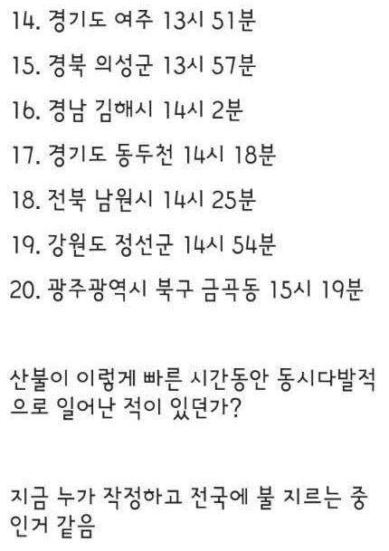전에도 이렇게 동시에 산불난적이 있었는지...