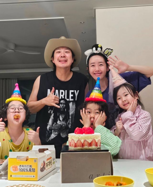 사진 속에는 하하네 가족들이 둘째 아들 생일파티를 위해 옹기종기 모여있다. 소울 군은 생일 꼬깔콘을 쓰고 케이크 초를 부는 등 행복한 모습이다.
