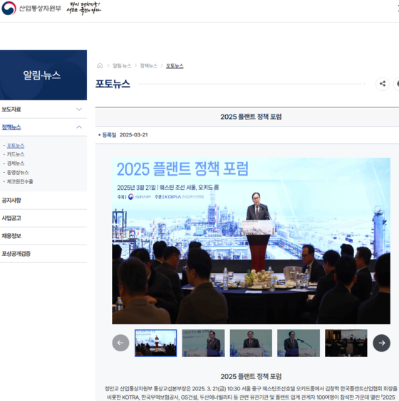 ▲ 산업통상자원부 누리집 포토뉴스 화면 갈무리 |