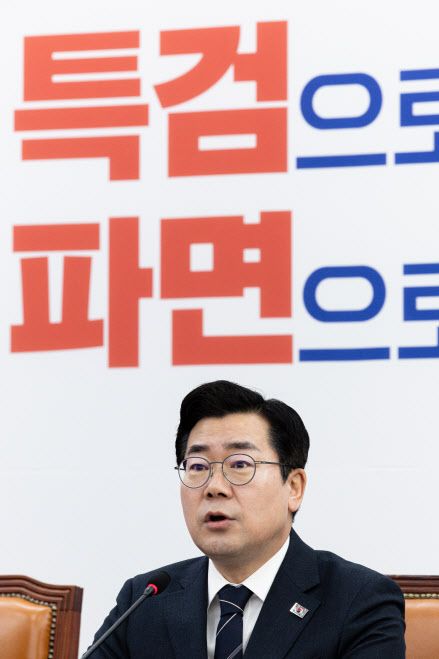 지난해 12월 10일 민주당이 감액 예산안 처리를 앞두고 최 대행과 국회의장실에서 만났던 상황을 언급하기도 했다. 박 원내대표는 “(예산안) 의결만 남은 상황에서, 경제 회생을 위해 증액을 통해 내수진작 기회를 제시했음에도 최 대행이 거부했다”며 “최 대행이 경기활성화 관련 증액은 요구 않고 오직 예비비 2조 1000억원만 올려달라고 했다. 내란수괴 윤석열의 불법계엄 지속을 위한 예산 확보에만 목을 맨 것”이라고 주장했다.