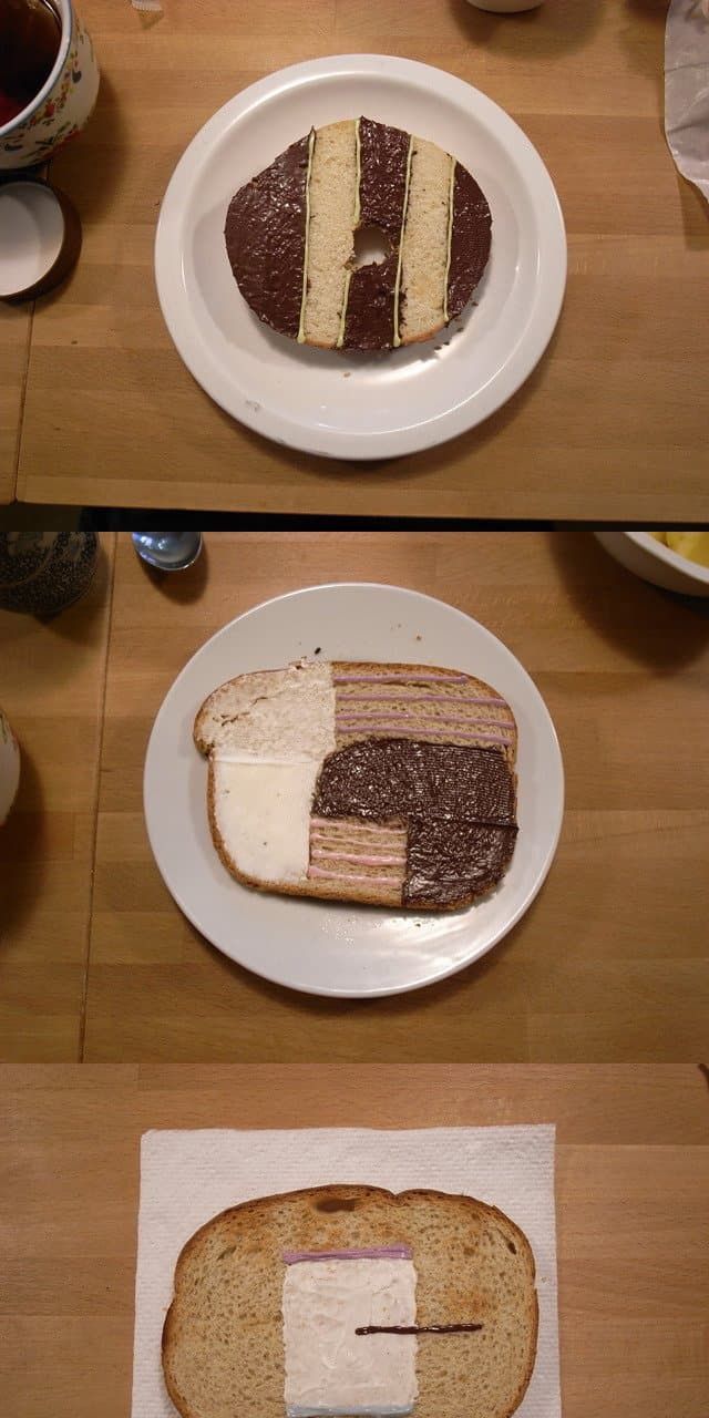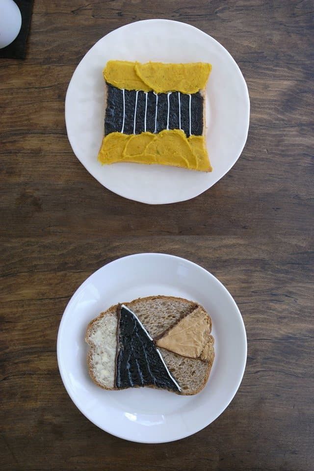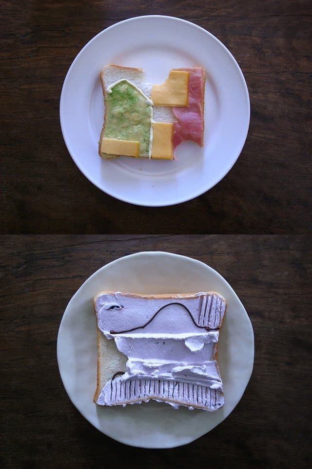 식빵에 그림을 그릴 때 잼이나 페이스트 등 다른 식재료를 사용해서
