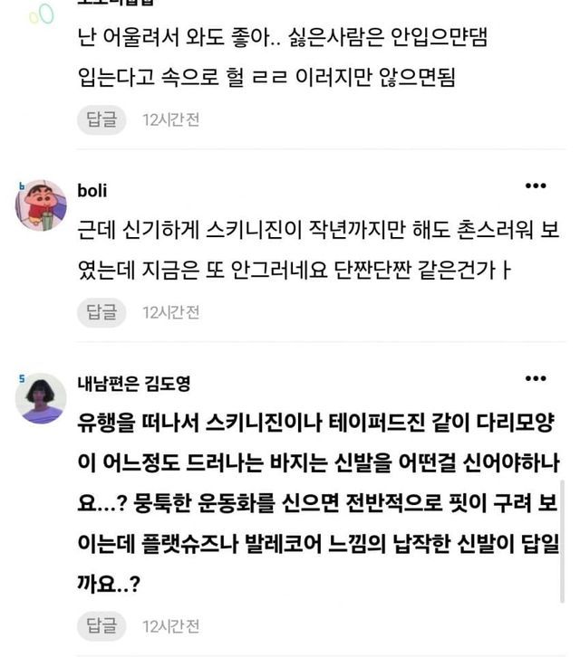 꾸준히 스테디 아이템인 스키니진을 촌스럽다고 꼽주는건