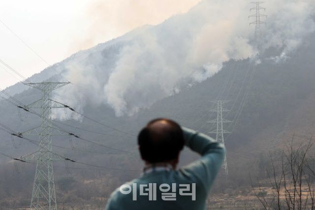 | [이데일리 노진환 기자] 경남 산청군에서 산불이 발생한 지 사흘째인 23일 오후 경남 산청군 시천면 일대에서 산불이 계속되자 주민들이 걱정스럽게 바라보고 있다. |