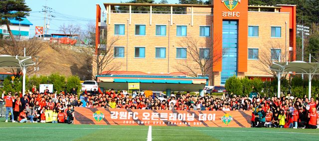 강원FC는 23일 강릉 오렌지하우스에서 2025시즌 ‘오픈 트레이닝 데이’를 개최했다. 지난해 약 180명이 참여했던 행사에 올해는 두 배가량 증가한 363명의 팬이 찾아 선수단과 뜻깊은 시간을 보냈다.