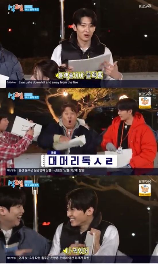 덱스는 대머리 독수리에서 '리'를 맞히고는 "나 몰랐다. 찍었다"면서 예상치 못한 정답에 신기해 했다.
