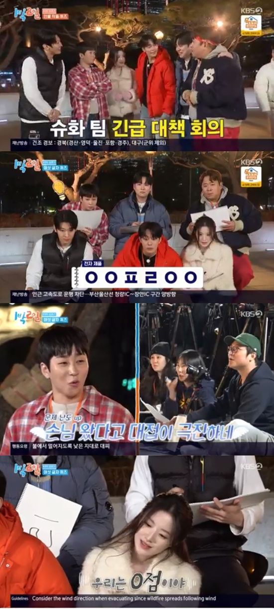 23일 방송된 KBS 2TV '1박 2일 시즌4'에서는 김종민, 문세윤, 조세호, 이준, 딘딘, 유선호의 KBS 표류기가 전파를 탔다.