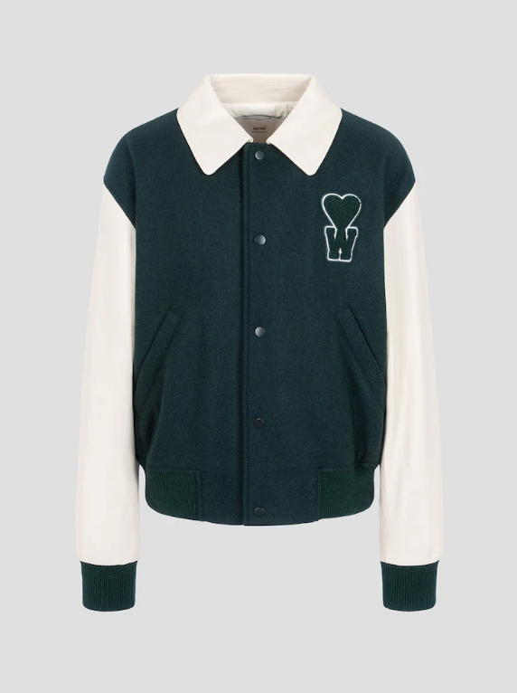 이번 컬렉션은 최우식이 가장 좋아하는 컬러인 그린을 메인 컬러로 사용했습니다. 여기에 아미의시그니처 심볼인 A자 로고를 W자 형태로 재해석했고요. 최우식(Choi Woo Shik)의 W에서 차용한 듯하죠?