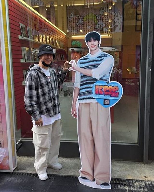 이날 지석진은 캐주얼한 옷차림으로 명동에 놀러 간 모습이다. 특히 그는 배우 변우석 등신대 앞에서 하트 포즈를 취하는 등 웃음을 유발했다.