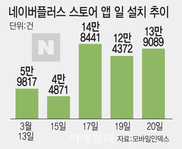 네이버는 지난 12일 구글 플레이에 앱을 출시하고, 애플 앱스토어는 19일에 출시했다. 20·30대 아이폰 이용자들의 유입으로 신규 고객이 더 늘었다.