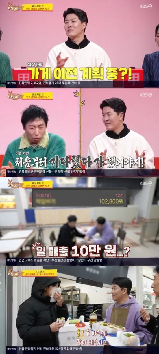 23일 방송된 KBS 2TV '사장님 귀는 당나귀 귀'에서는 한민관이 햄버거 가게 사장님이 된 근황을 공개하는 모습이 전파를 탔다.
