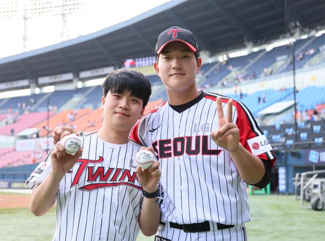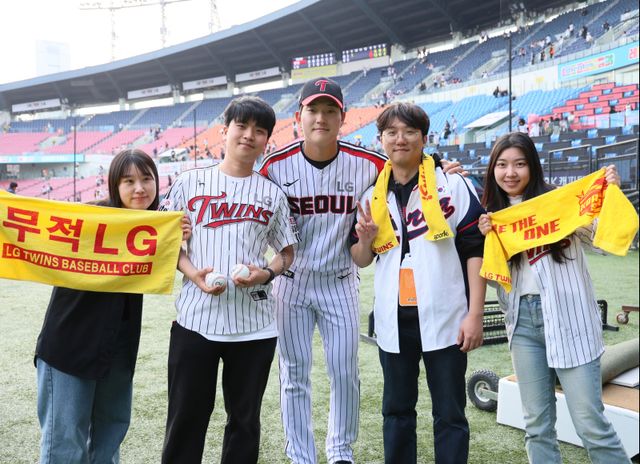 문정빈은 경기 뒤 홈런공을 전달해 준 LG 팬과 기념사진을 촬영했다.