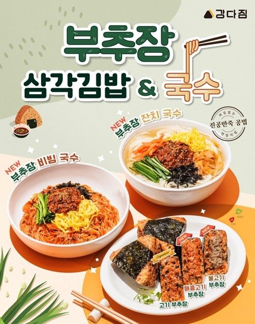 이번에 선보이는 메뉴는 봄철 대표 식재료 부추를 활용한 ‘부추장 시리즈’와 기존 인기 제품에 토핑을 50% 증량한 ‘토핑듬뿍 삼각김밥’이다.
