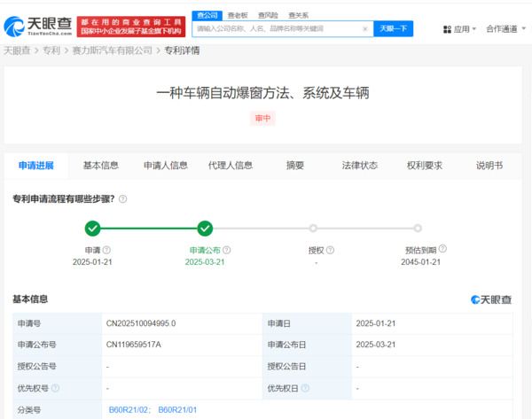 중국 지식재산권 플랫폼 ‘톈옌차’에 따르면, 사리스는 최근 ‘차량 자동 창문 파괴 방법, 시스템 및 차량’에 대한 특허를 출원하며 AI 기반의 스마트 안전 기술 개발에 본격 착수했다.