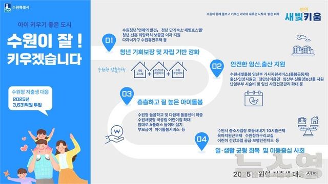 (뉴스영 이현정 기자) ‘아이 키우기 좋은 도시’를 만들고 있는 수원시가 ‘2025 인구정책 시행계획’을 수립해 추진한다.