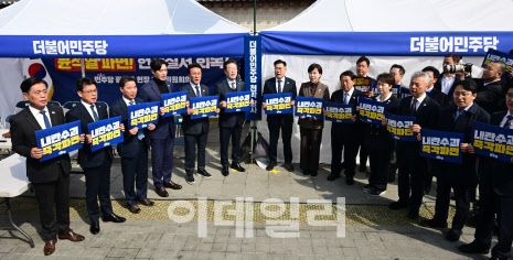 윤석열 대통령 탄핵 심판과 관련한 요구도 이어졌다. 박 원내대표는 “헌법재판소가 윤석열 대통령 탄핵 심판 선고를 즉각 내려야 한다”며 “오늘 바로 선고 기일을 지정하고, 내일 당장 선고를 내려달라”고 거듭 요청했다.
