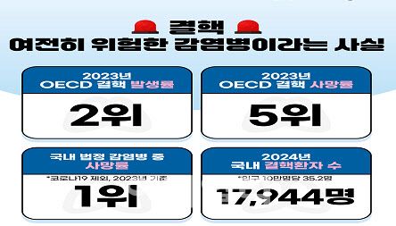 하지만 결핵 발생률이 인구 10만명 당 인구 35.2명으로 OECD 평균(2023년) 9.8명의 3.5배나 됐다. OECD 회원국 중 29개국의 결핵 발생률이 10명 미만이라는 것과 비교하면 여전히 높은 수준이다. 미국 3.1명, 독일 4.8명, 영국 7.6명, 프랑스 8.3명, 일본 9.3명으로 우리나라보다 훨씬 낮았다.