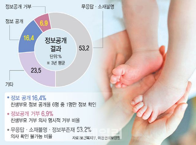 실제로 최근 3년간(2021~2023년) 기존 입양제도 하에서의 입양정보공개 통계를 보면, 친생부모 인적사항 공개율은 평균 16.4%에 그쳤다. 친생부모가 정보 공개를 명시적으로 거부한 경우는 6.9%에 불과했지만 무응답·소재불명·정보 부존재로 53.2%가 공개되지 못했다. 이러한 문제는 보호출산제에서도 반복될 가능성이 높다는 우려가 제기된다.