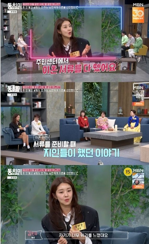 최근 김빈우는 MBN '속풀이쇼 동치미'에서 이혼 위기를 겪었다고 밝혀 놀라움을 자아냈다.
