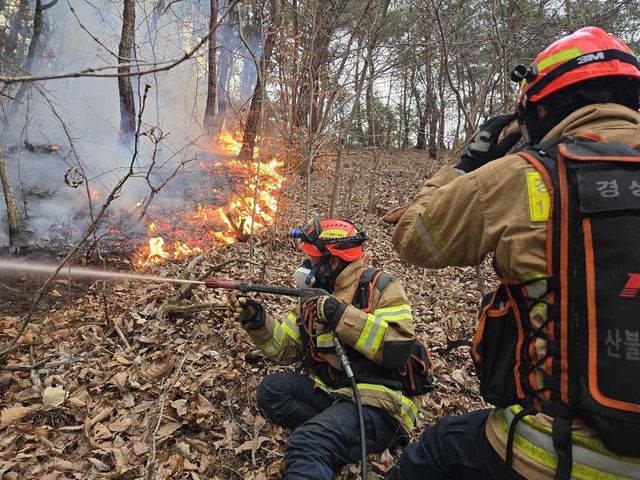의성군은 24일 오후 2시 34분 재난문자를 통해 "현재 산속에 있는 진화대원들은 안전한 곳으로 대피하라"라고 명령했다.