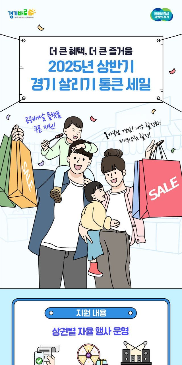 도와 경상원은 지난해 총 40억 원의 예산으로 2회에 걸쳐 '경기 살리기 통큰 세일'을 진행하며 전통시장과 골목상권, 일반상권 등 348곳을 지원했다. 지역 상인과 도민들의 높은 만족도와 사업 성과 등을 반영해 올해는 총 100억 원의 예산으로 상반기(4월)와 하반기(10월)로 나눠 진행할 예정이다.