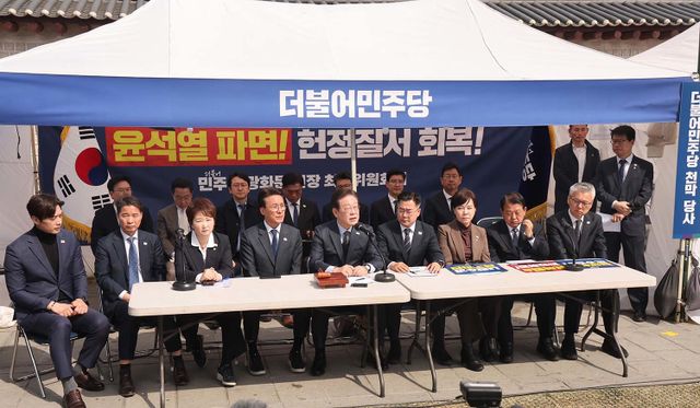 민주당이 광화문 광장에 천막을 치고 당사로 삼자 국민의힘은 "불법적인 거리정치로 헌재를 겁박하려는 꼼수"라고 몰아세웠다. 민주당은 서울시가 천막당사 철거 방침을 밝힌 데 대해 "오세훈 시장이 극우 세력에 잘 보이려는 얄팍한 술수"라며 맞받아쳤다.