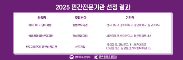 문화체육관광부와 한국콘텐츠진흥원(콘진원)이 민관협력을 통해 K콘텐츠산업의 동반성장을 지원하는 ‘2025 콘텐츠 스타트업 지원사업’에 참여할 스타트업 및 예비창업자를 4월 9일까지 모집한다.