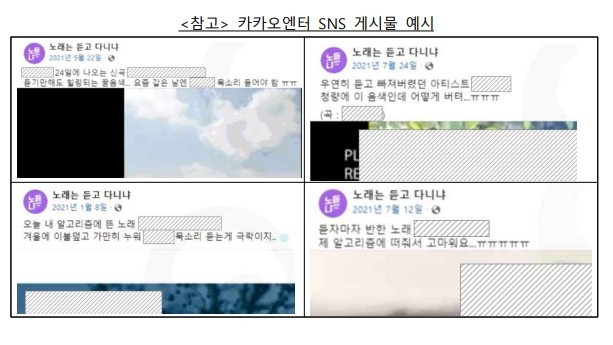 공정거래위원회가 24일 공개한 카카오엔터 소셜미디어 게시물 예시. ⓒ 공정거래위원회