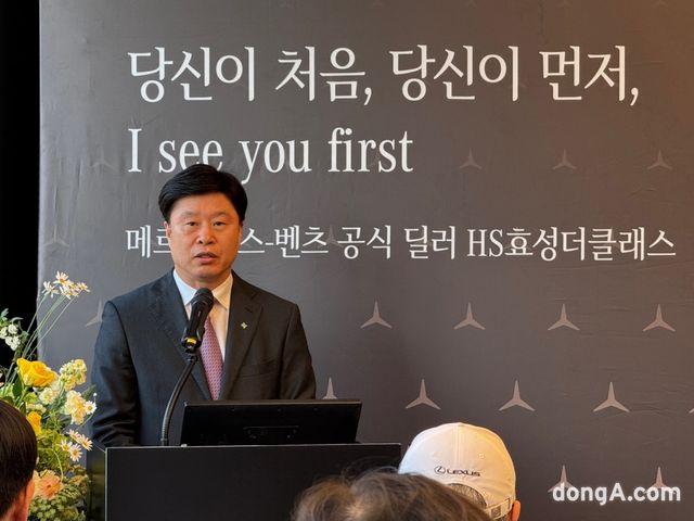 이경섭 HS효성더클래스 대표가 21일 서울 서초구 메르세데스벤츠 방배 서비스센터에서 언론 공개행사를 진행하고 있다.