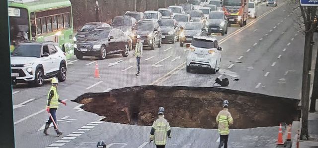이어진 36분 소방대 전언에 의하면 현재 4개 차로에 걸쳐 땅꺼짐이 발생한 것으로 추정되며 구조대상자를 확인 중이다.