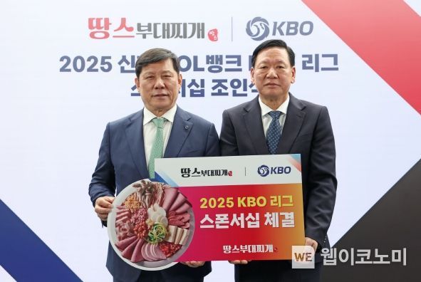 (웹이코노미) KBO와 부대찌개 포장•배달 테이크아웃 전문점 땅스부대찌개는 3월 24일(월) KBO 스튜디오에서 조인식을 갖고 2025 KBO 리그 및 퓨처스리그 공식 스폰서십을 체결했다.