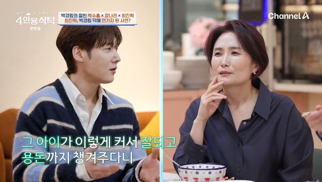 24일 방송된 채널A '절친 토큐멘터리 - 4인용 식탁'에서는 방송인 겸 배우 박경림이 게스트로 나서 박수홍, 장나라, 최진혁을 초대하는 모습이 그려졌다.