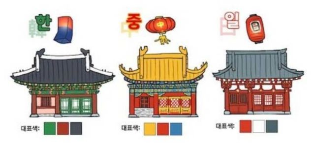 한중일 전통 건축물은 비슷하게 생겼는데요. 한옥만의 특징이 무엇일까요? 중국의 집은 온돌과 마루가 없고 일본은 마루만 있는 반면, 한옥은 방에는 온돌을 대청과 툇간에는 마루를 깔아두었다는 점이 가장 큰 특징이라고 할 수 있어요. 난방시설인 온돌과 냉방시설인 마루를 가지고 있는 한옥은 겨울에 춥고 여름에 더운 한반도의 특징을 보여준다고도 할 수 있겠네요.