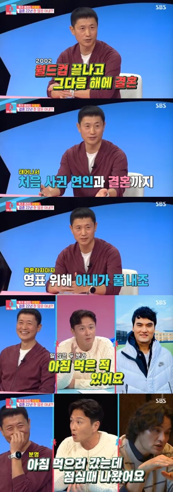 이날 방송에서 이영표는 진태현♥박시은 부부를 응원하기 위해 스페셜 게스트로 출연했다. 이영표는 "결혼 22년차"라면서 "결혼을 2002월드컵 끝나고 다음 해 6월에 했다"고 말했다.