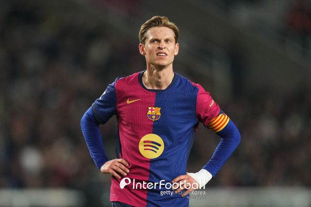 영국 ‘트리뷰나’는 24일(이하 한국시간) “네덜란드 미드필더 프렌키 더 용이 FC바르셀로나를 떠날 수도 있다. 맨유는 더 용에 관심을 보였으며 바르셀로나는 협상에 열려 있다. 맨유는 올 여름 5,000만 유로(약 800억 원)를 제공할 준비가 돼 있으며 후벤 아모림 감독의 관심을 끌고 있다”라고 보도했다.