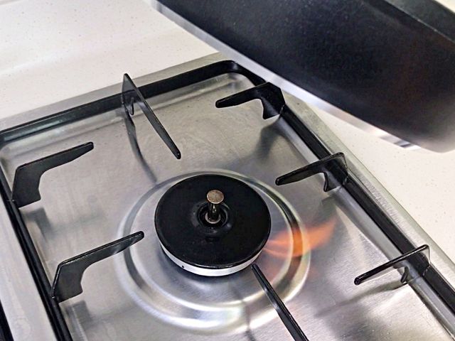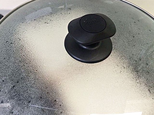 후라이팬에 뜨거운 김이 가득 차면서