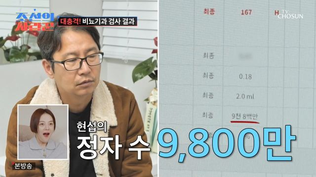 의사는 "개원이래 정자수 1등"이라고 언급했고, 심지어는 남성호르몬 수치도 동나이대 대비 3배나 높아 모두를 경악케 했다. 이에 김국진은 "현섭이 지금까지 뭐한거야"라고 말했고, 황보라는 "멋져보여 갑자기"라고 반응했다.